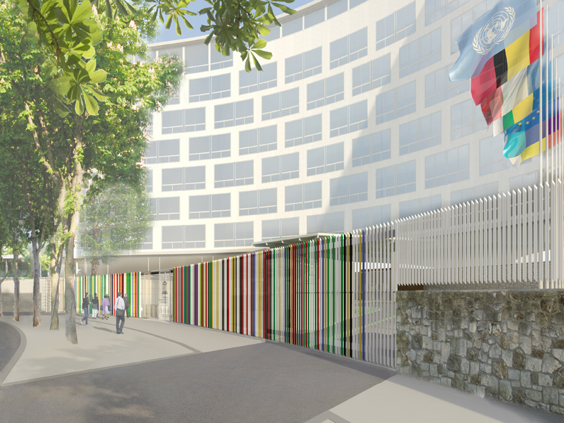 Poste d\\\'accueil et de contrôle sécurité à l\\\'Unesco - Paris / Domingo - Grandjean, architectes.